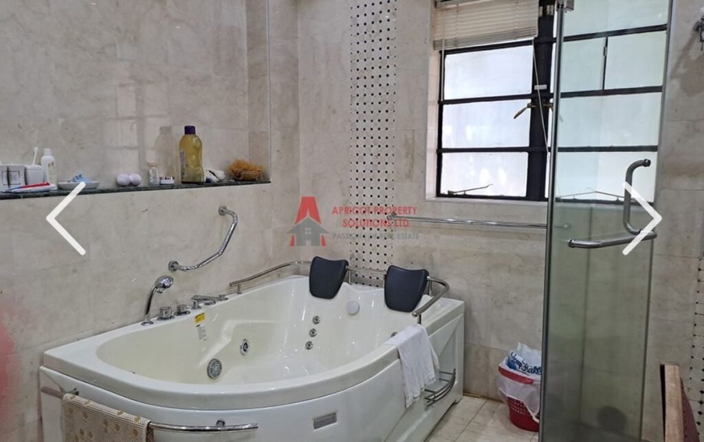 Spacious all ensuite residence featuring a master bedroom with walk-in closet and private balcony, fully fitted kitchen, pantry, utility area, and a dedicated prayer room. Amenities include 3 parking spots, lift, borehole, full backup generator, gym, steam & sauna, entertainment area, kids’ play area, and a terrace.