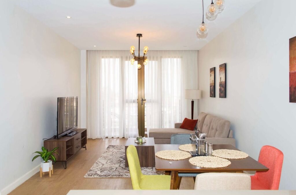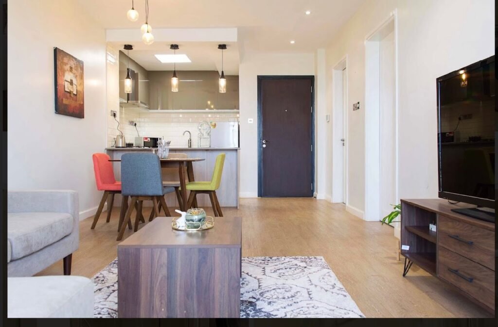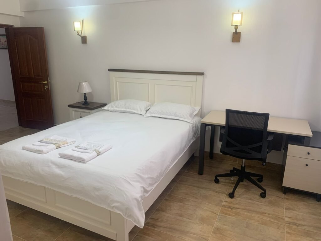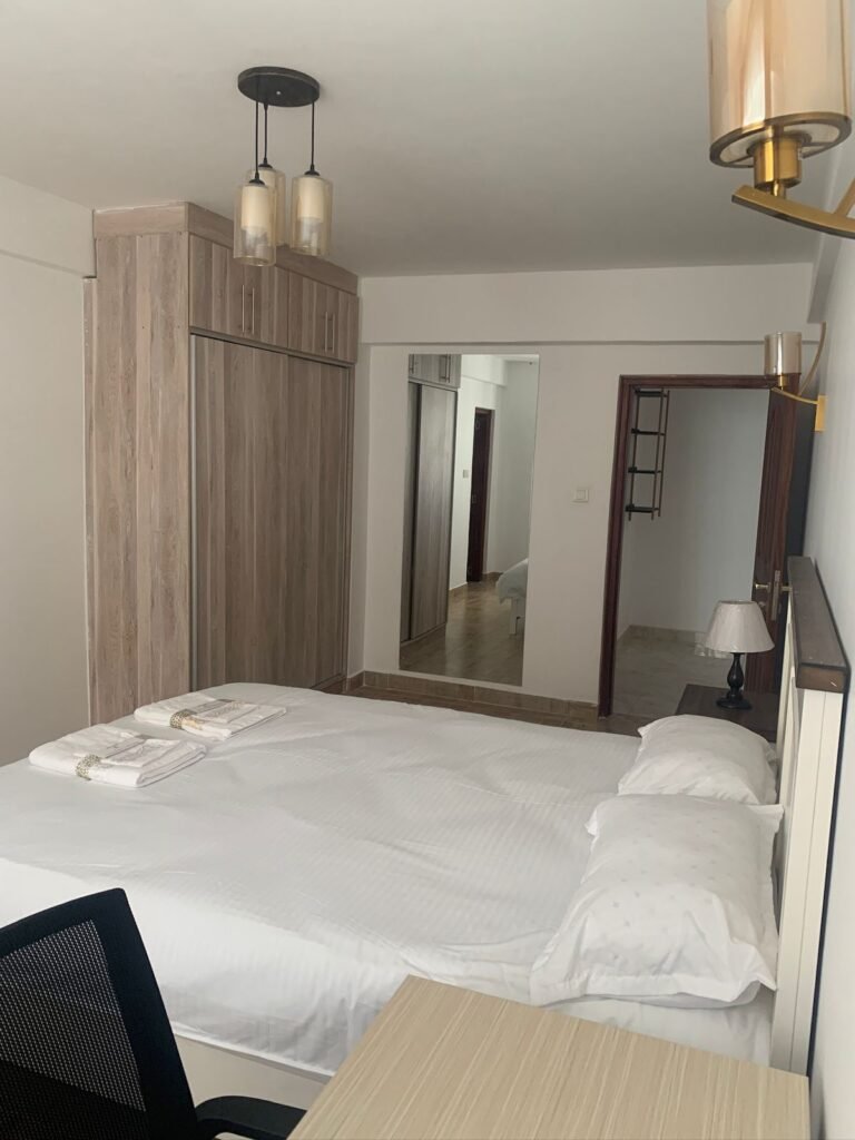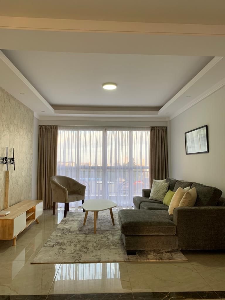 Luxurious fully furnished apartment featuring a separate study, spacious living area with balcony, a fully equipped kitchen with pantry, 3 mounted TVs, internet provision, and modern furnishings throughout. Enjoy premium amenities including a swimming pool, gym, kids’ play area, recreation spaces, full backup generator, lifts, 24/7 security with CCTV, and on-site supermarket and restaurants. Includes 2 parking spaces, instant showers, mosquito netting on sliding windows, and a safe deposit locker for added convenience.